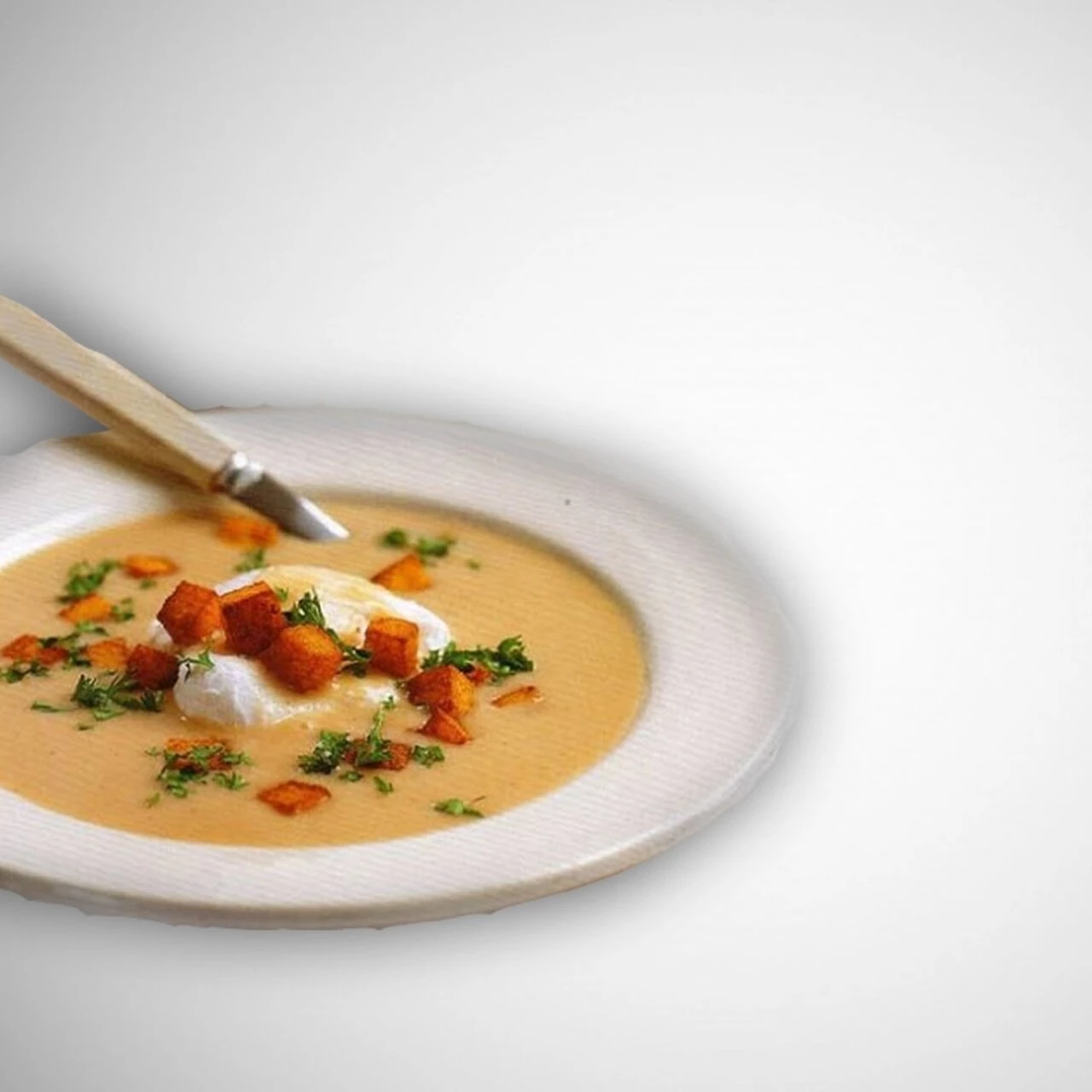 Бульон с яйцом и крутонами